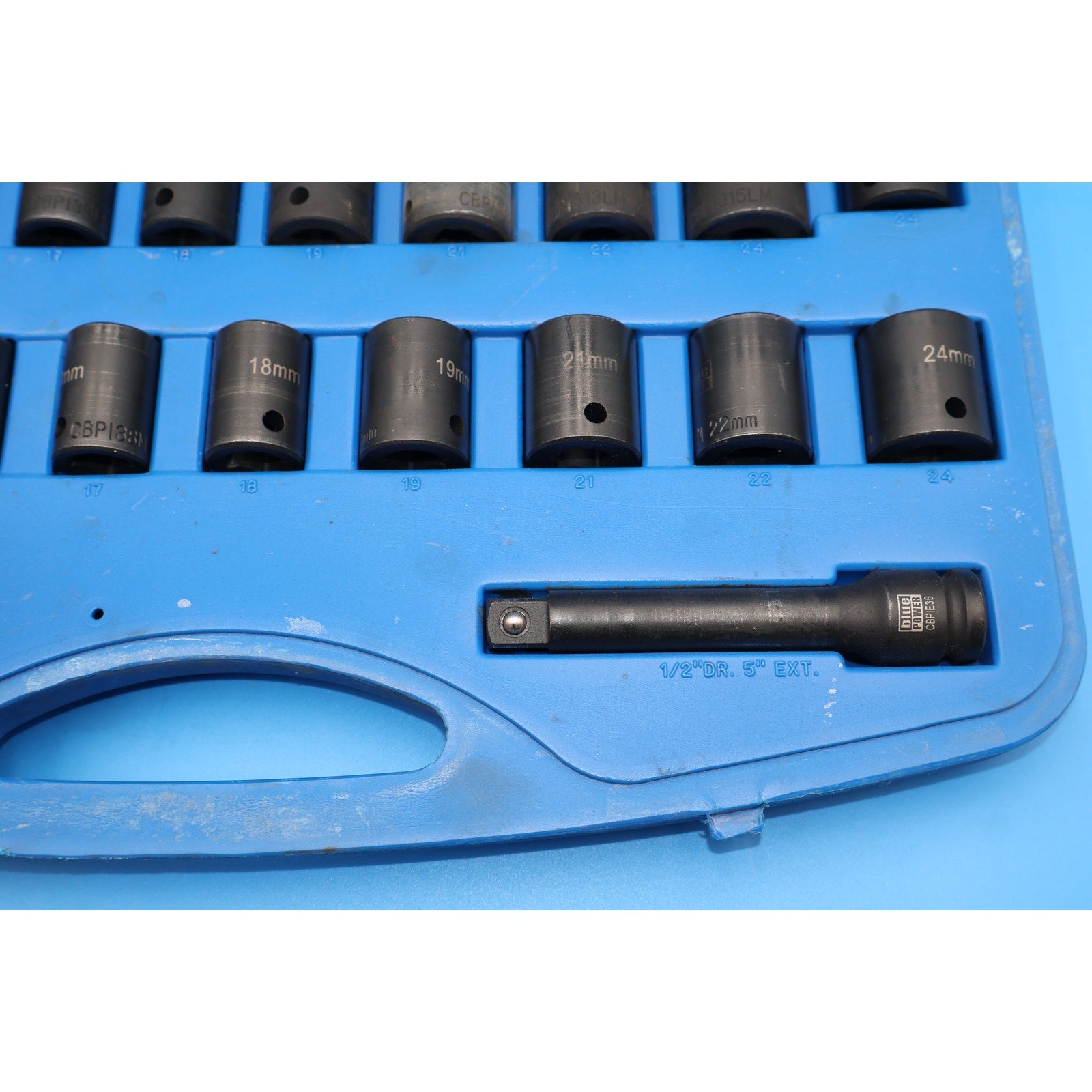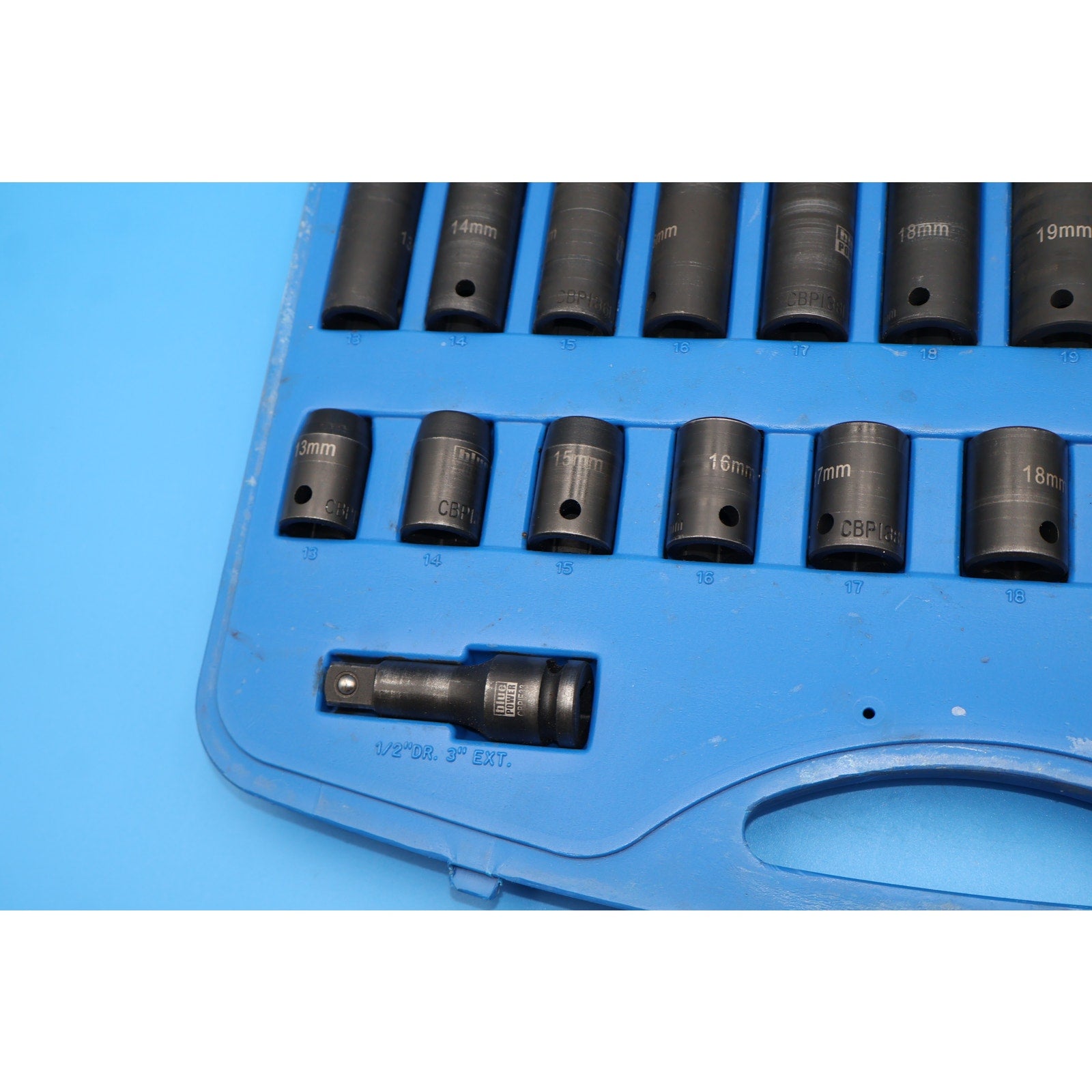 • Deep 6-Point Impact Sockets (10 pcs): Sizes 13mm to 24mm