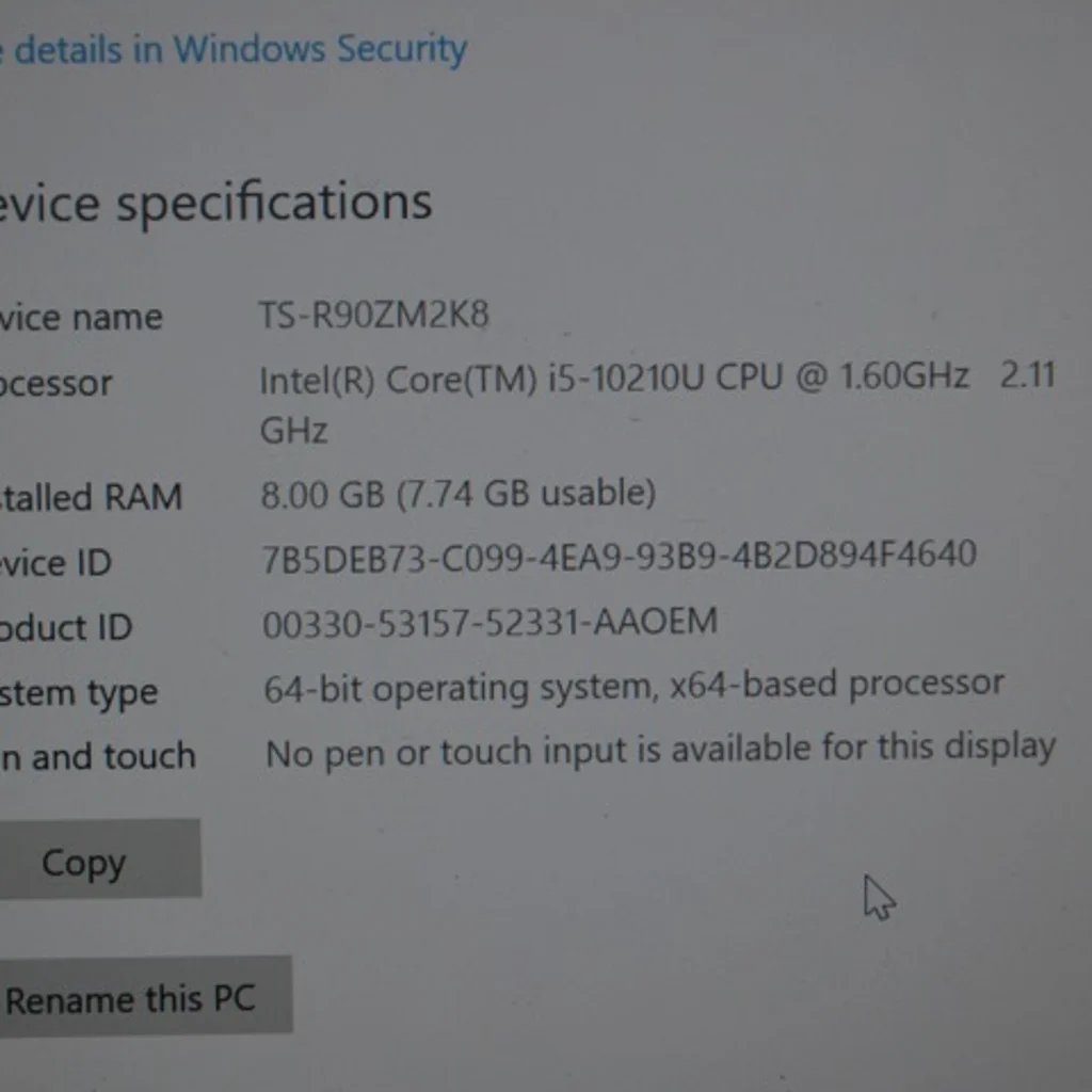 You are looking at a Lenovo ThinkPad 20R3-001LUS (256GB SSD, 8GB RAM, i5-10210u), Laptop. It is used but in good condition. It does show signs of use with scuffs, scratches, and grime all around the Laptop. The biggest blemish is the screen has a slight bend. But does not effect how the screen functions. It has been tested and while everything appears to be fully functional, I did have some concerns. When restoring it, during set up it ask you to sign into a company login. It can be bypassed by not connecting to wifi and will be set up with a local account. Once set up, and everything seems to be fully functional. But it is Windows AutoPilot/Intune Locked. Im sure once the updates come in on a local install it will be locked. So buy with caution. With the stated issue this will be sold AS-IS with no guarantees that no problems will or won't arise. It comes loaded with Windows 10, 256GB SSD, 8GB of RAM, and Intel Core i5-10210u CPU @ 1.60GHz. It comes with the Laptop and Charger. What you see is what you get. Please look at all pictures before purchasing. 48684-1