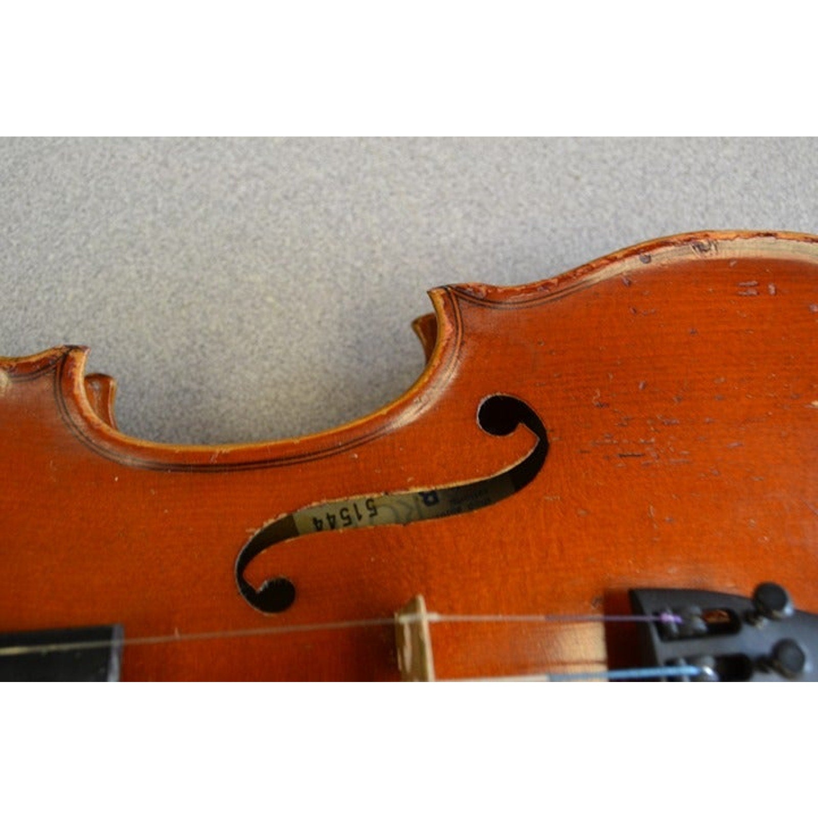 You are looking at a Scherl and Roth A206/C 1/2 Size Violin, Antonius Stradivarius Reproduction. It is used but in good condition. It does show signs of use with scuffs, scratches, and grime all around the violin. Biggest blemish is the scuffs, scratches, and wear around the edges. But nothing too major or too distracting. Just average wear and tear from normal everyday use. Overall its in good shape with no noticeable cracks or holes. It has been tested and everything appears to be fully functional. It comes with the Violin, Bow, and Carrying Case. What you see is what you get. Please look at all pictures before purchasing. 51532-7