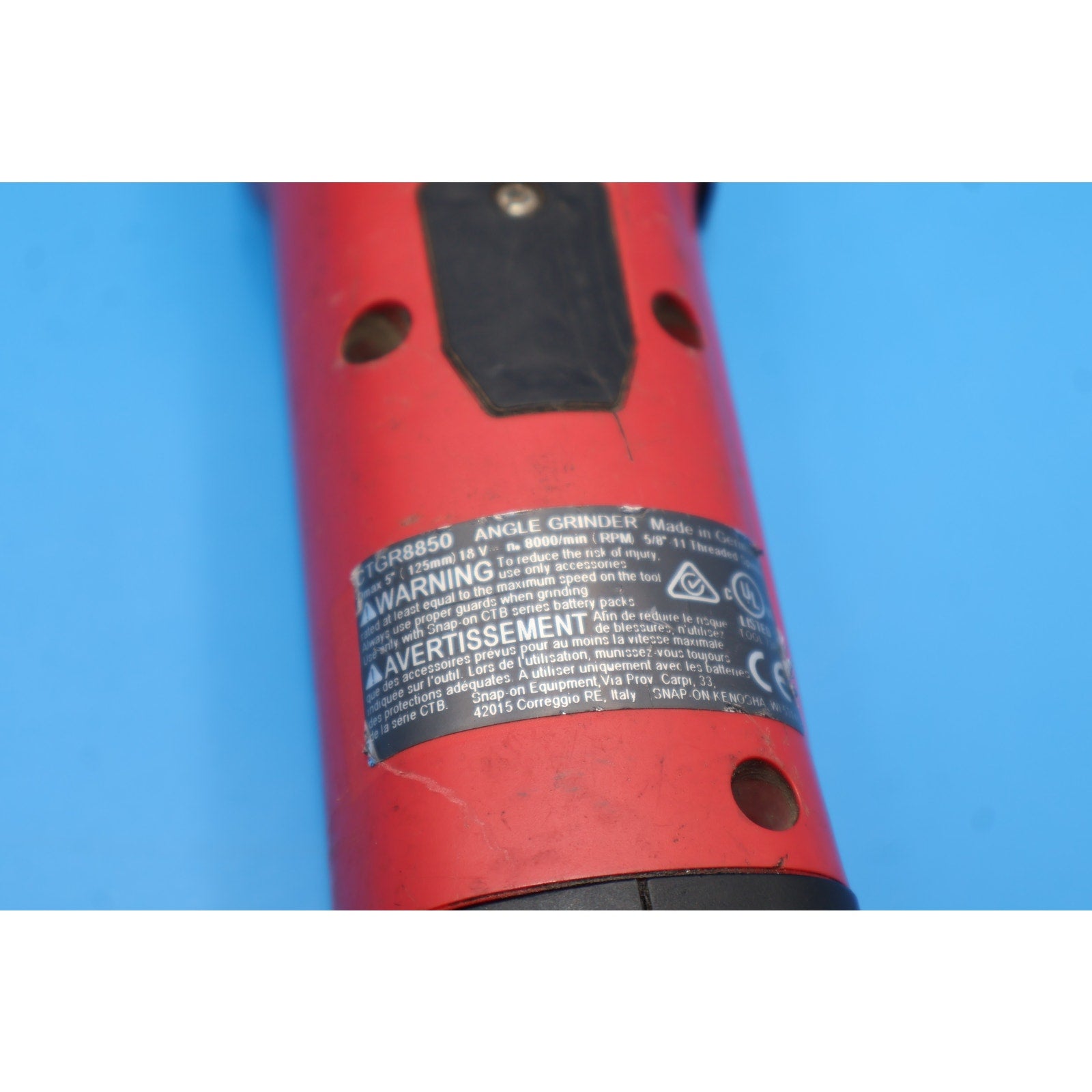 You are looking at a Snap-on CTGR8850 Cordless Angle Grinder / Cut-Off Tool (18V, Tool Only).