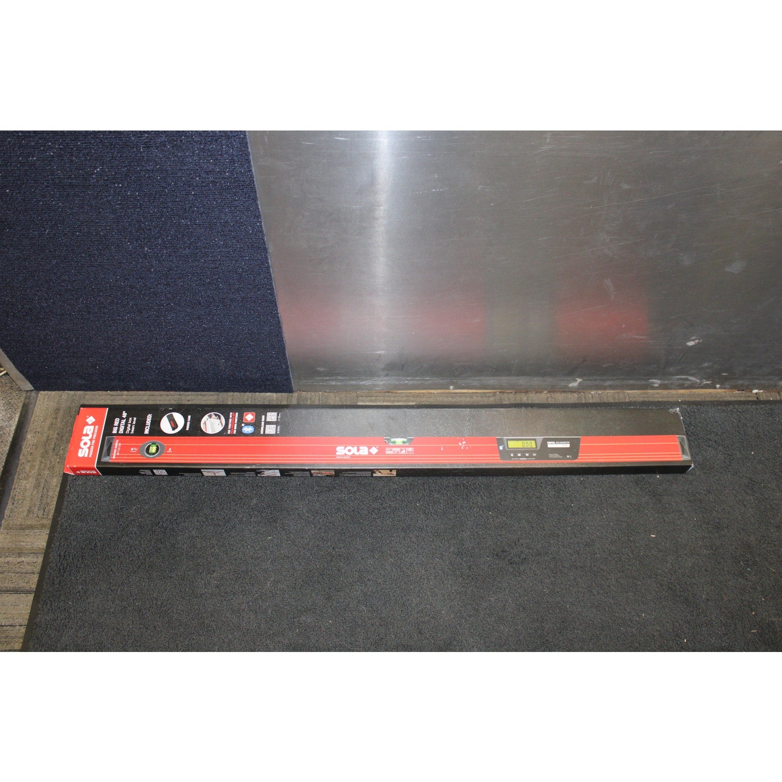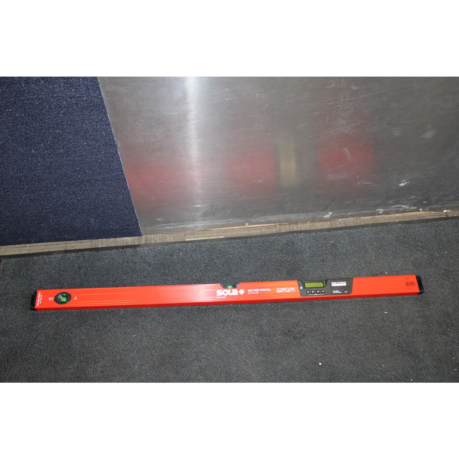 You are looking at a Sola Big Red Digital 48", Digital Box Beam Level, 017314XSO, LSB48D. It is used but in good condition. It does show signs of minor use with scuffs, scratches, and grime all around the the level. But nothing too major or too distracting. Just minor wear and tear from minimal use. It has been tested and everything appears to be fully functional. It comes with the Level, Soft Carrying Case, and Original Packaging. What you see is what you get. Please look at all pictures before purchasing. 53391-1